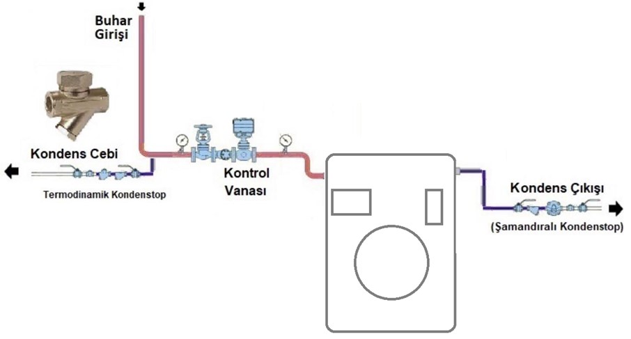 Bununla birlikte çamaşır kurutma makinalarının girişindeki branşmanlarda duruş anlarında buharın yoğuşarak kondense dönüşmesiyle biriken suyun makinaların çalıştırılması ile koç darbesine neden olduğunu saptadık.